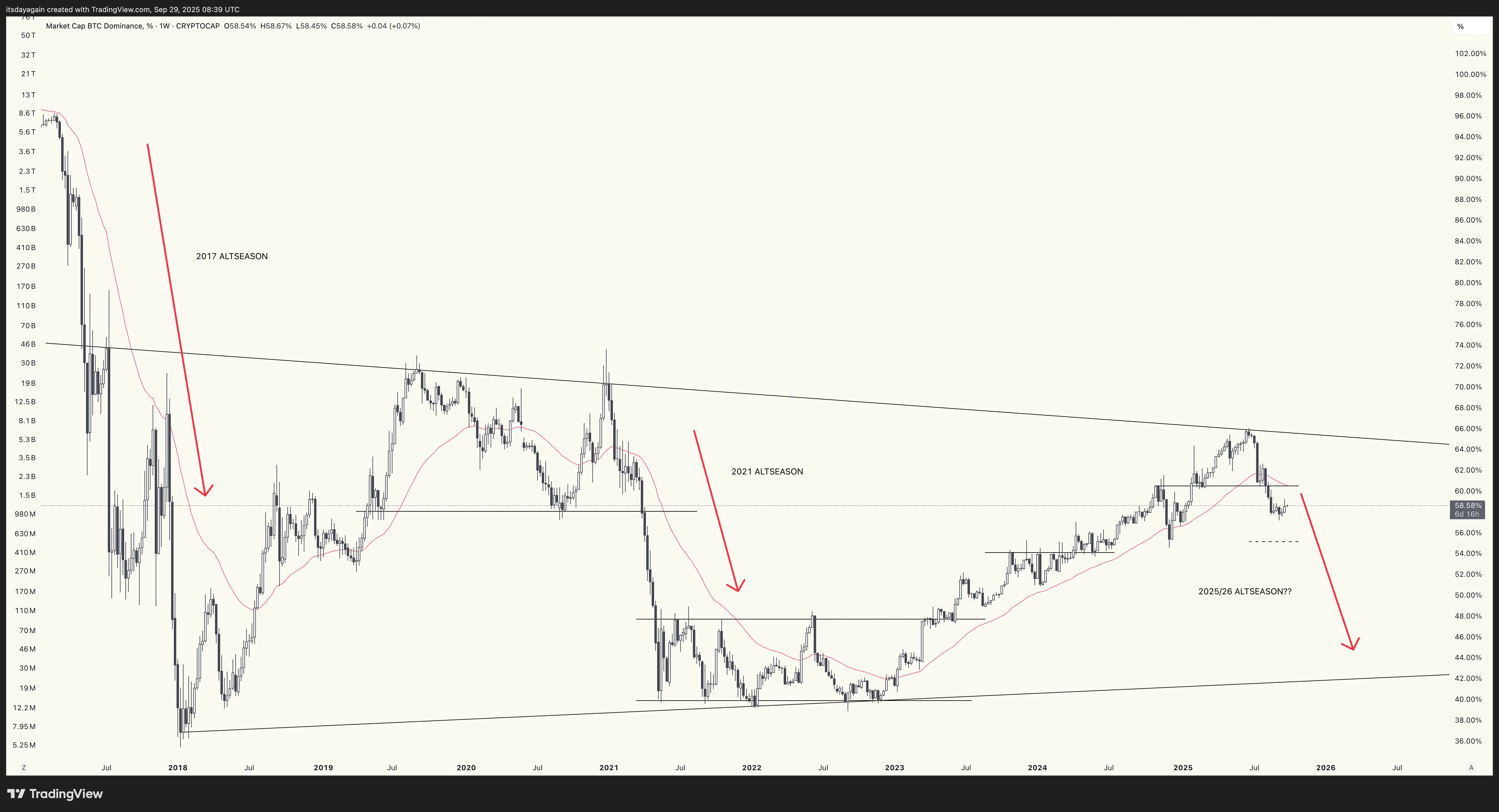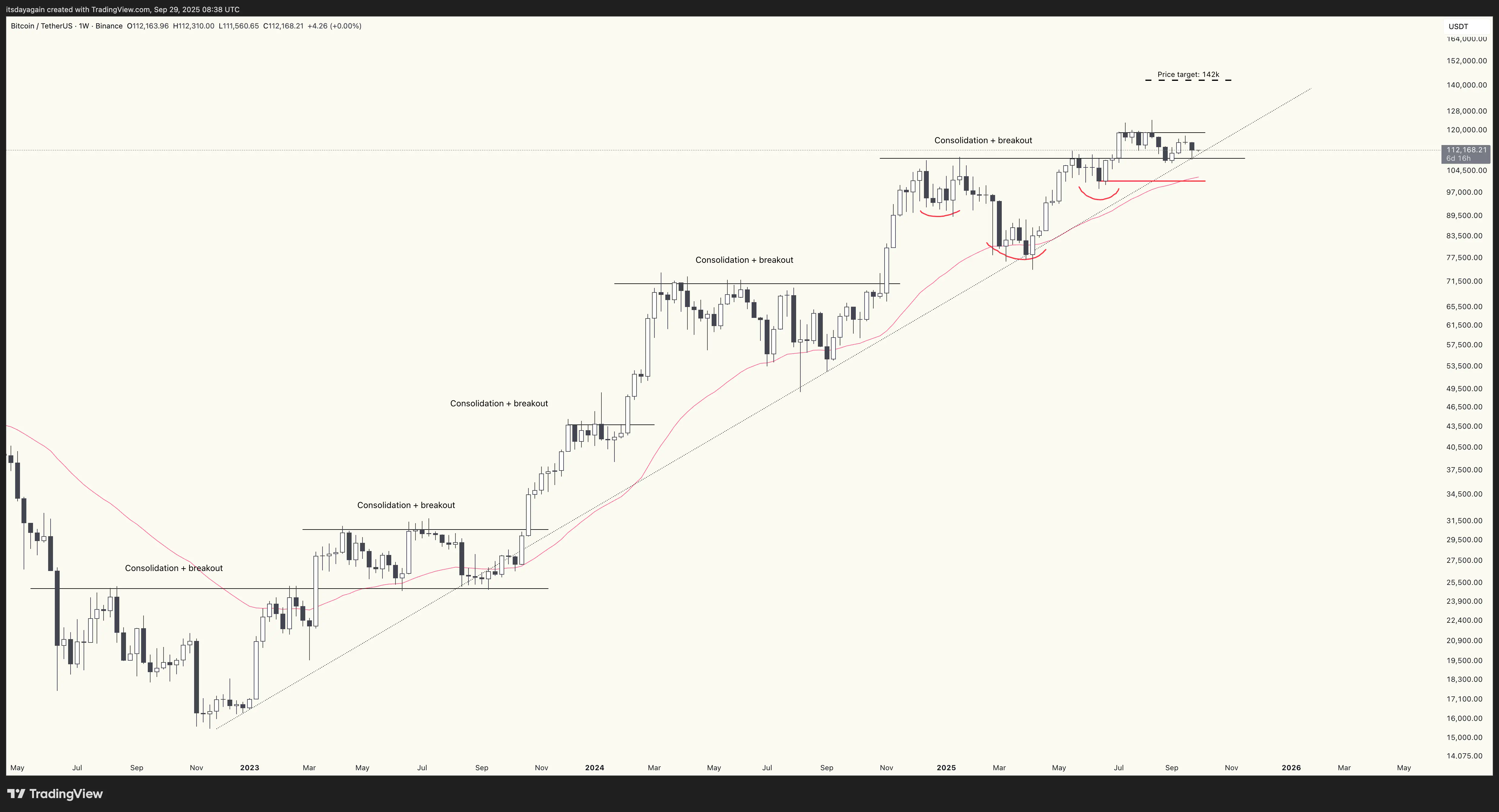 On the weekly timeframe, however, the charts for bitcoin and the big alts still hold above key support levels. Although it is a sign of weakness that BTC retested $109k support again so soon, the breakout is still in play, and the price target of $142k remains.