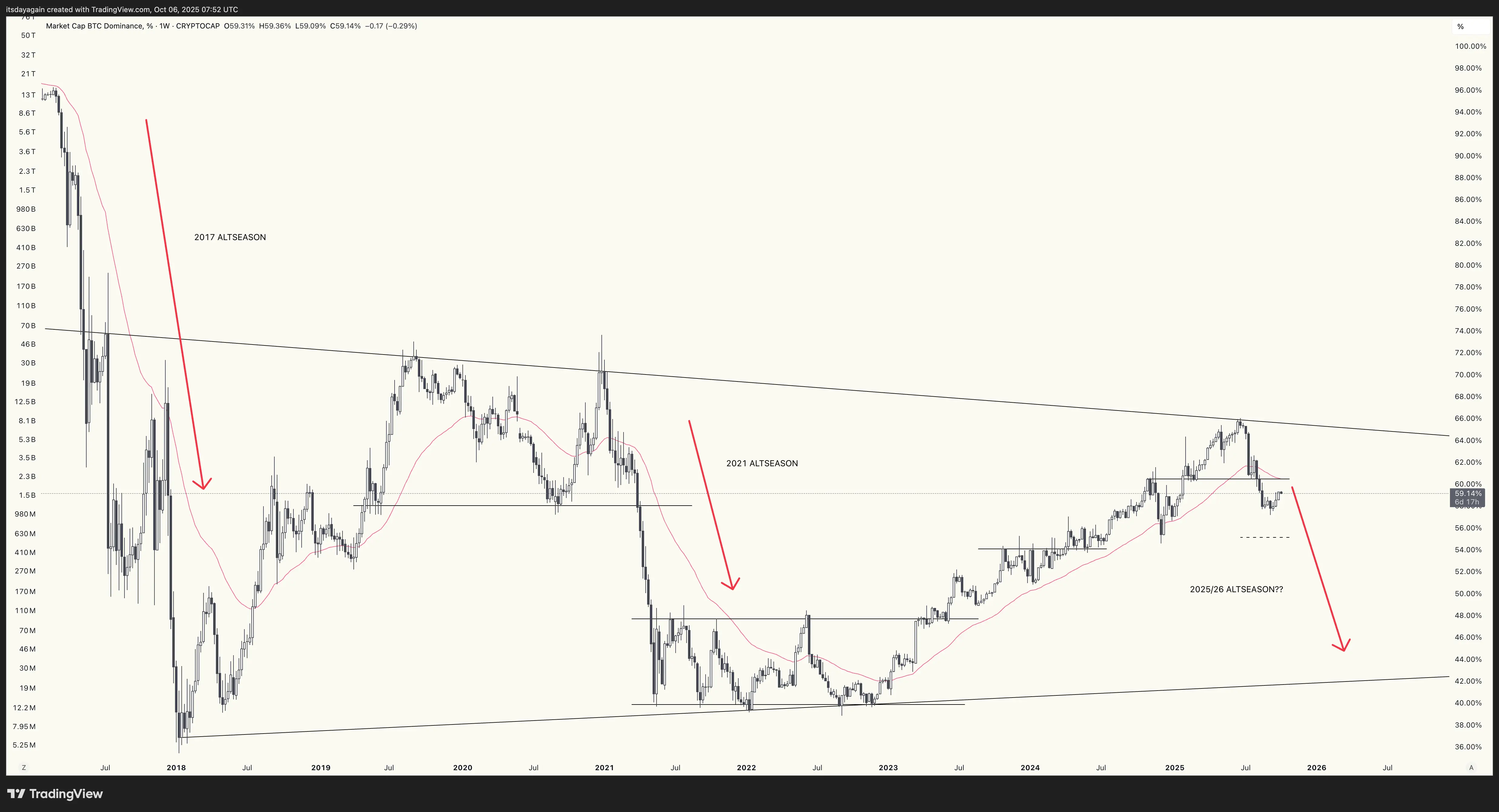 Meanwhile, bitcoin dominance continued to bounce. But the trend is still clearly down, meaning altseason is still ongoing. If history repeats, BTC will now keep going up, followed by a continuation of the big cap alts like ETH, SOL, and BNB. Then the smaller cap alts will get their time to shine, towards the end of altseason, leading up to the cycle top.