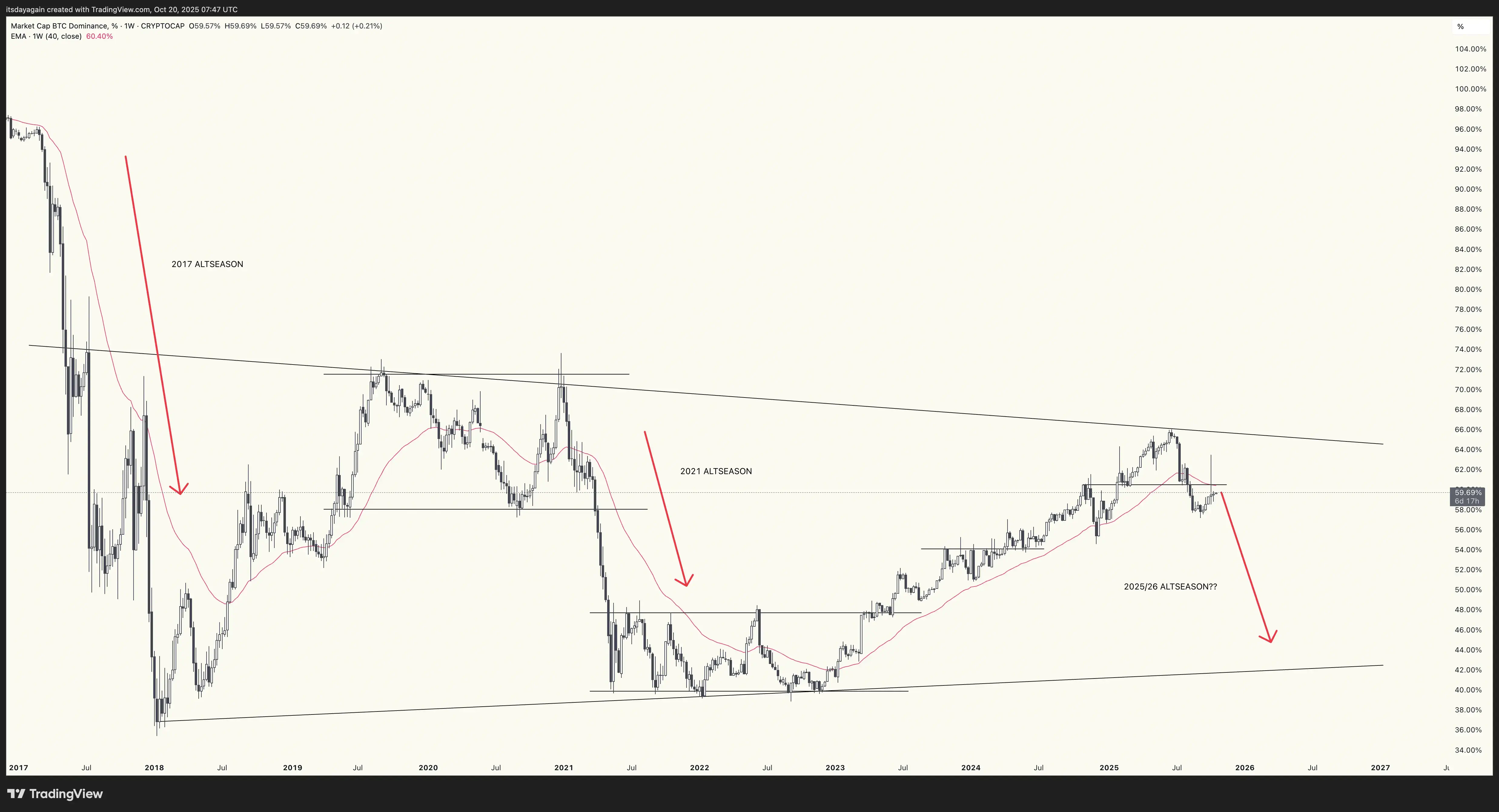 While the underlying structural forces are slower to change, sentiment can change fast. So if the sentiment turns around again, the conditions are still there for BTC to start rallying, and for altseason to pick up the pace.