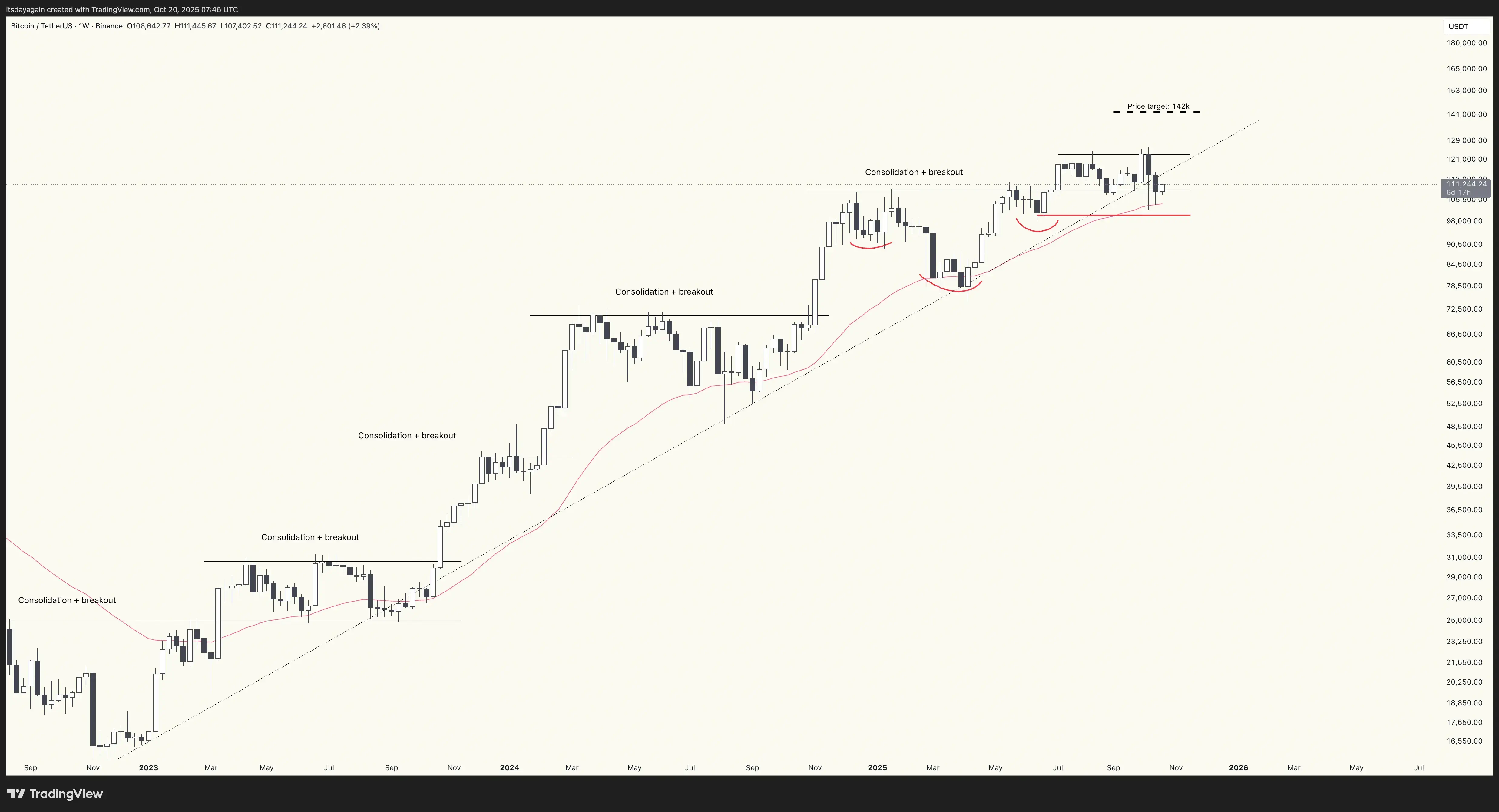 After a bounce early in the week, bitcoin and altcoins alike struggled to regain their footing after the recent flash crash. In the end though, bitcoin put in a decent weekly close, keeping support at $109k intact, with the price target of $142k still in play.