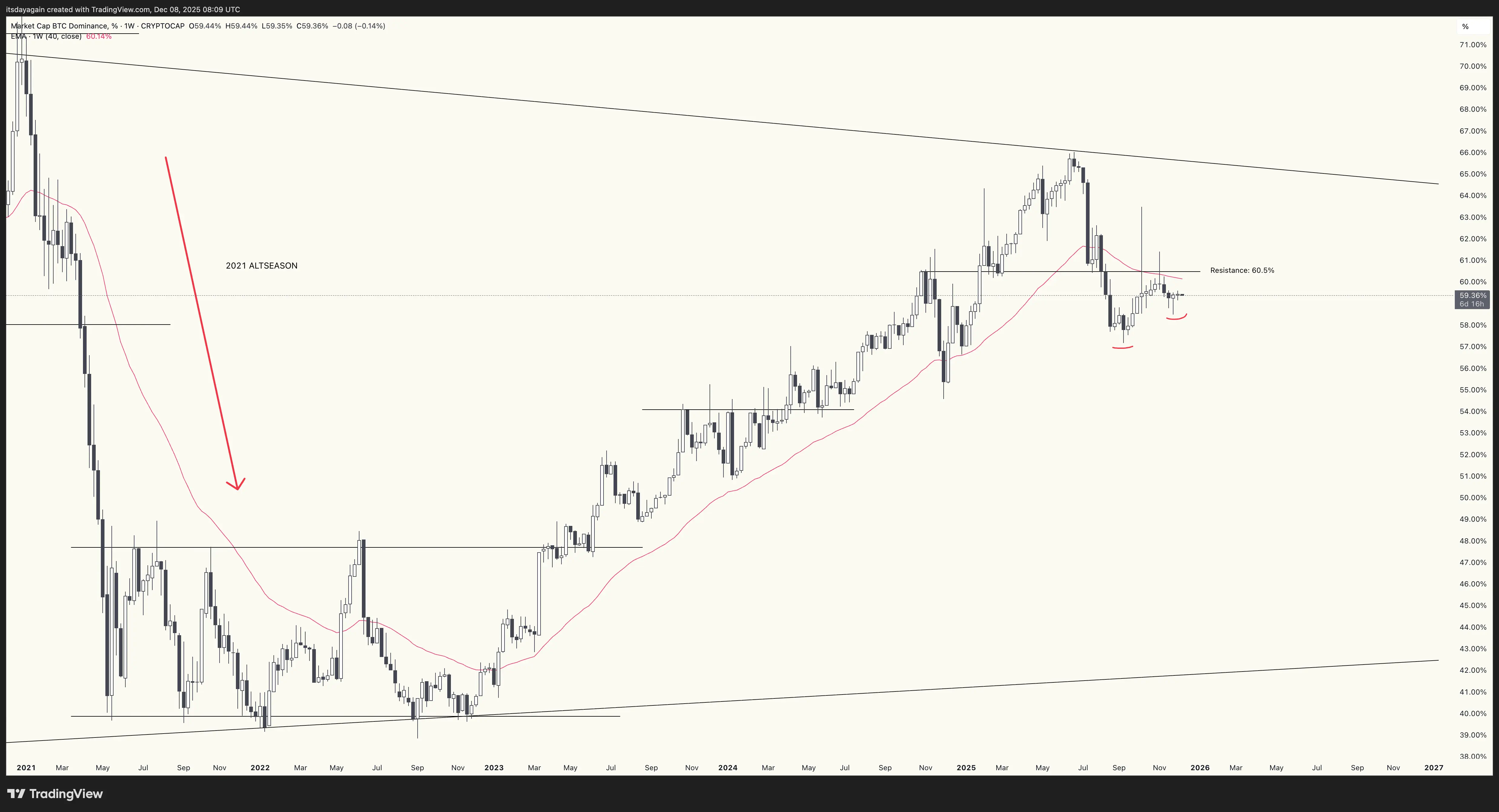 Bitcoin dominance again ended the week flat. Altseason remains on pause.
