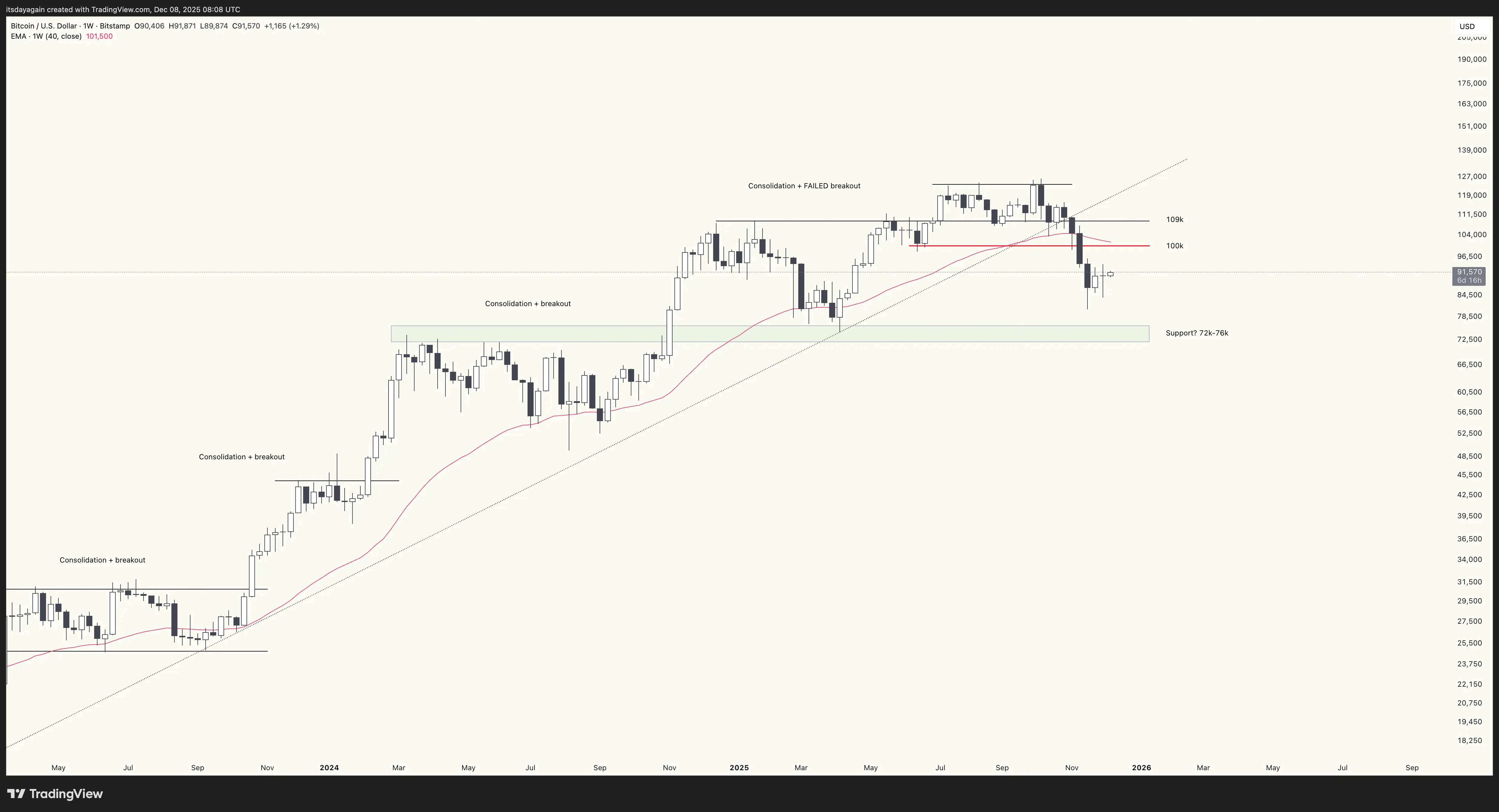 If the bounce does continue, look for $100k and $109k as the two main resistance levels. To the downside, $72k-76k is a strong support area.