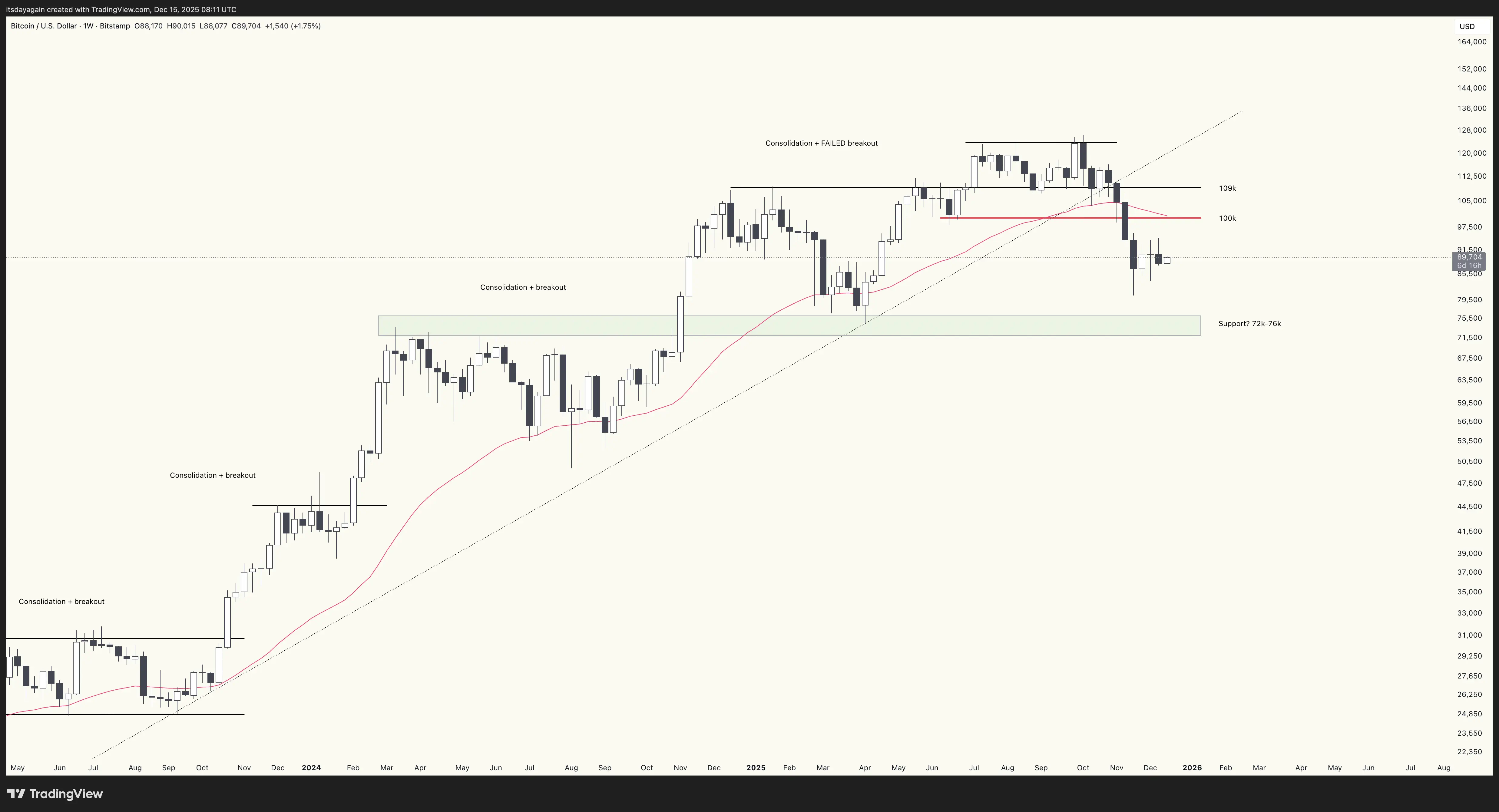 If bulls can push price back above $95k, the bounce can continue up to test $100k or even higher, as shorts get liquidated, and sellers FOMO back in. If that happens however, we should be extremely suspicous of a major bull trap, which risks eventually breaking down to lower lows in the months ahead.
