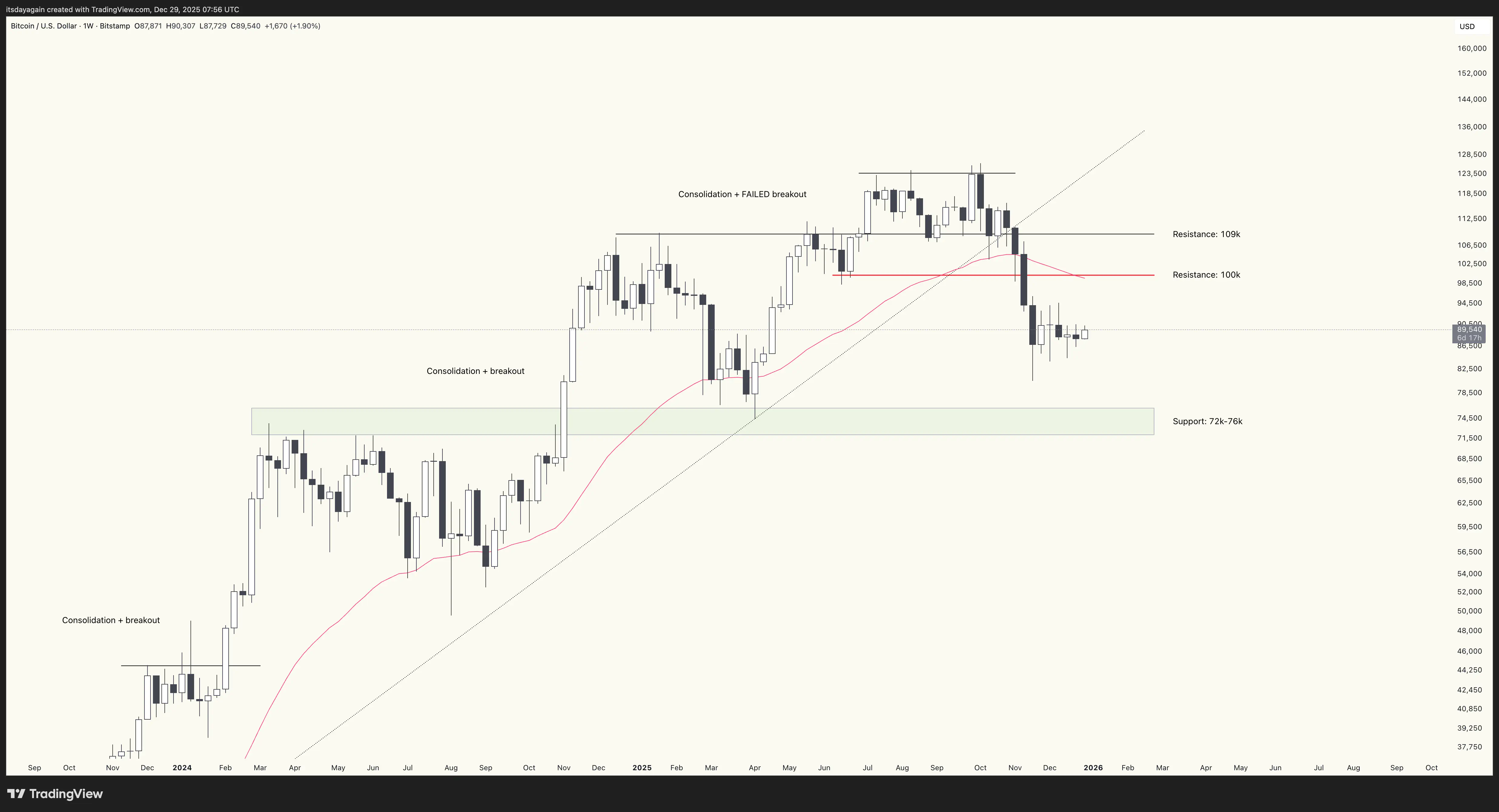 Stocks inched up over Christmas, and silver is going parabolic. Meanwhile, bitcoin spent another week flat, showing little signs of life. If there is going to be a relief rally in crypto before another leg down, it’s going to have to come soon.