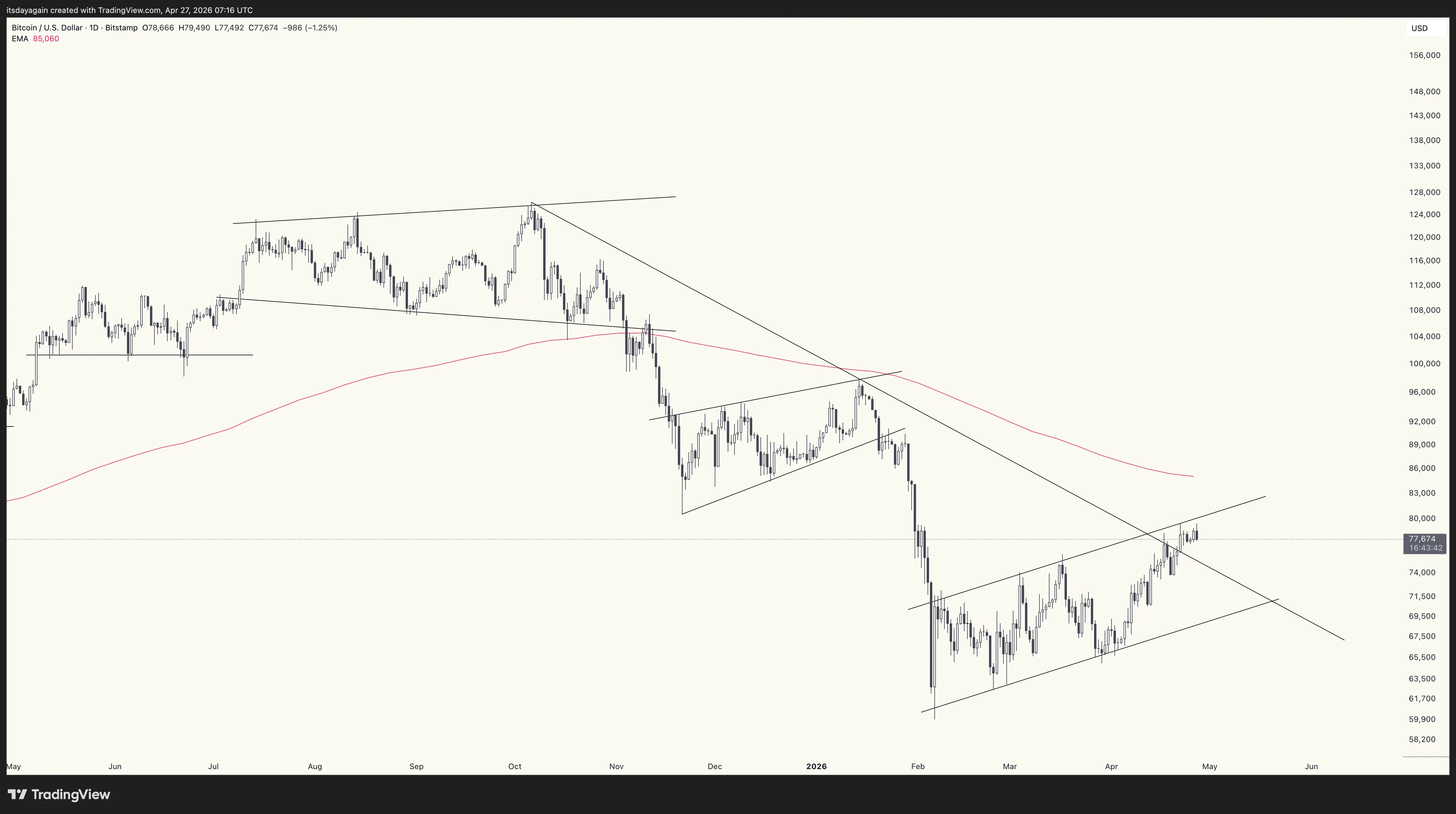 Could it even be that bitcoin has bottomed out? Well, it’s certainly possible. But not likely. This looks like a textbook bull trap — a counter trend move to draw people back in, before turning around into a lower low sometime in the next few months.