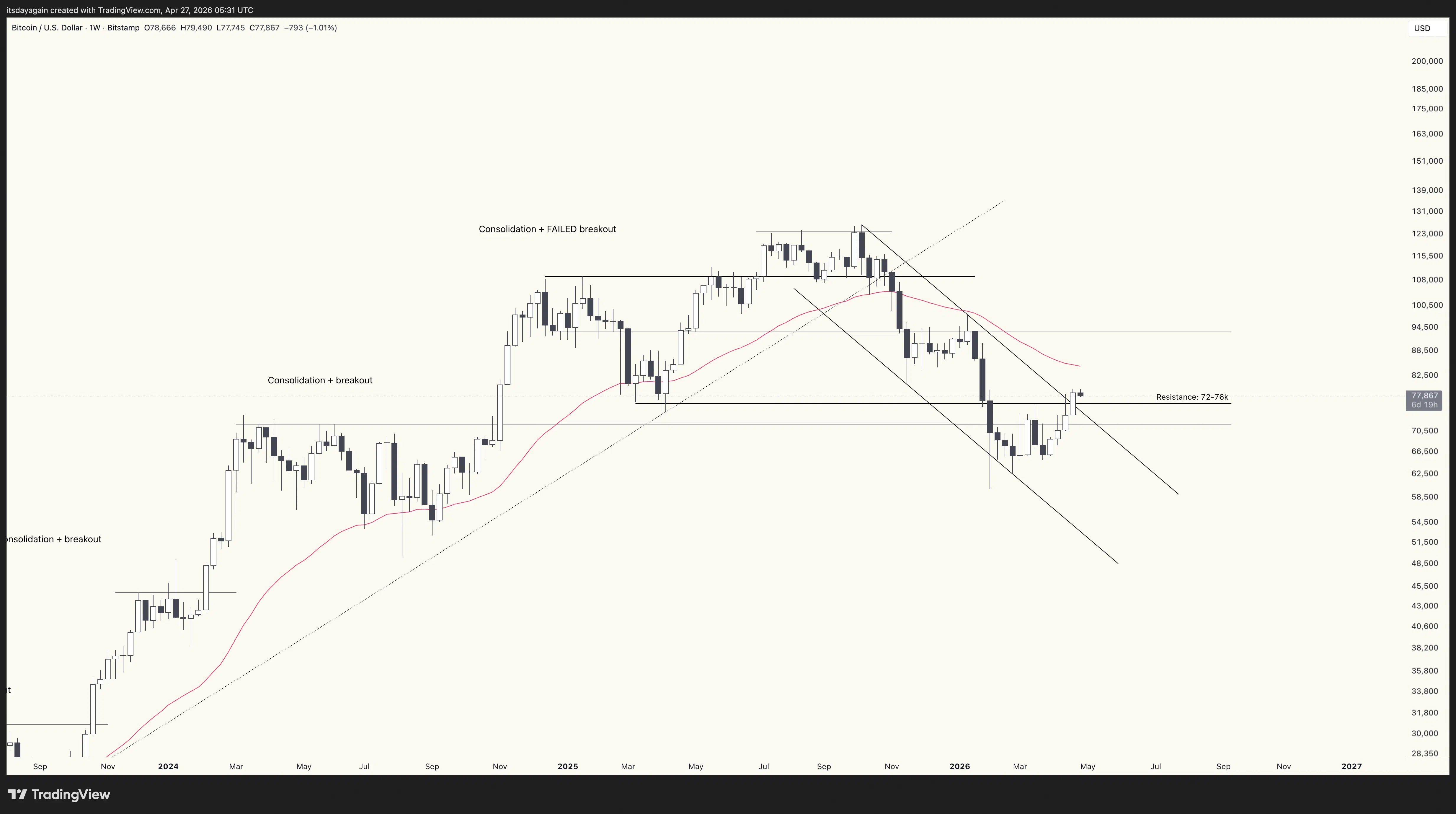 Could this outlook change? Of course. But for me to turn bullish, bitcoin would have to clear the 40 week moving average, and form some kind of clear bottoming pattern. Until then, I remain bearish.